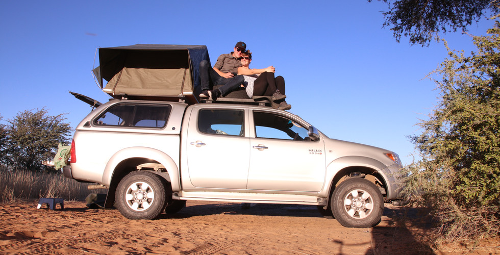 Wir richteten uns vor Sonnenuntergang ein, machten Feuer, grillierten unser Fleisch und ich hielt einen langen Ast griffbereit, falls plötzlich aus dem Nichts ein Löwe, Gepard, Leopard oder eine Hyäne auftauchen sollte. Es ist schon ein komisches Gefühl, bei finsterer Nacht auf dem Campingstuhl vor dem Auto am Feuer zu sitzen, rundherum keine Menschenseele, nur Tiere. Entsprechend unentspannt war ich dann auch und wir gingen bereits um 20.00 Uhr in unser Dachzelt. Die Nacht verlief aber sehr ruhig und ohne Tierbesuch, was sich noch ändern sollte…