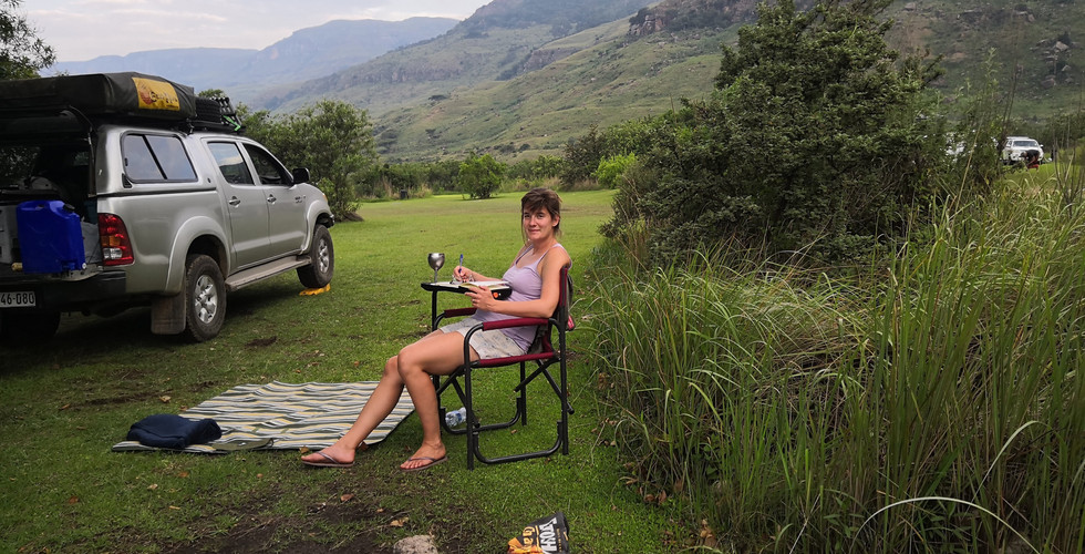 Am nächsten Tag entschieden wir uns zurück nach Südafrika zu fahren. Nach gut einer Stunde hatten wir die Grenze erreicht und am Mittag gönnten wir uns ein Mittagessen in Clarens, wo wir vor 7 Jahren schon mal übernachteten. Was für ein Kontrast zu Lesotho und das nur wenige Kilometer voneinander entfernt. Nach dem Mittagessen fuhren wir weiter in den Golden Gate Nationalpark wo wir es uns auf dem Campingplatz gemütlich machten. Als wir so in der Hängematte lagen, fuhren wieder Chris, Julia und Emma vorbei und wir quatschten lange über Offroadautos, Steuern und unsere Reiseerlebnisse.