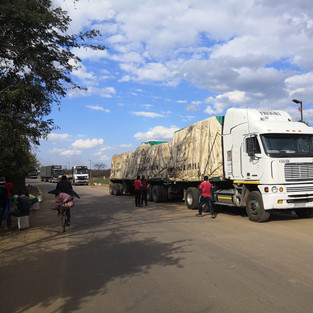 Nachdem wir auch auf der Morgensafari kein Glück hatten, machten wir uns auf den Weg zu den Victoria Fällen. Nach tagelangen Sand- und Schotterpisten konnten wir es kaum erwarten endlich wieder einmal auf einer Teerstrasse zu fahren. Nach einem kurzen Einkaufsstopp in Kasane fuhren wir zum Grenzübergang von Botswana nach Simbabwe. Wie erwartet, war dieser- im Vergleich zu den bisherigen Grenzübergängen - etwas mühsam. Es wuselte nur so von Menschen, unzählige Camioneure mit ganz viel Papierli, Geldwechlser, ein paar Touristen, Frauen mit Baby auf dem Rücken, hochoffizielle Beamten mit viel Lametta auf der Brust. Die Stimmung war aber sehr angenehm und alle waren sehr freundlich. Und schon ging es auch los. Formular ausfüllen, anstehen an Schalter 1, Visum bezahlen. Da der Simbabwe Dollar seit der Hyperinflation praktisch inexistent ist, kann man nur noch in US Dollar bezahlen. Da wir jedoch keine USD dabei hatten und Kreditkartenzahlung nicht möglich war, boten wir unsere Euros an, die wir glücklicherweise dabei hatten. Die 50 USD fürs Visum konnten wir dann mit 50 Euros bezahlen (ein guter Deal für den Zöllner). Weiter gings, an Schalter 2, anstehen um das Auto zu immatrikulieren. Sämtliche Details mussten angegeben werden. Motorennummer, Fahrgestellnummer, Farbe, Hubraum, wirklich alles. Der Beamte tippte seelenruhig im Adlermodus all meine vorgelesenen Informationen in das System. Da wir bereits alle Euros an Schalter 1 ausgegeben hatten, wussten wir noch nicht wie wir Schalter 2 befriedigen können aber mit unserer afrikanischen Gelassenheit liessen wir das zuerst auf uns zukommen. Nachdem alle Informationen im System waren und der Beamte alle Papierli mit den obligaten Stempel versehen hatte, zückte er eine Kreditkartenmaschine und fragte «Visa or MasterCard»? Geht also doch mit Karte aber nur an Schalter 2! Da soll einer noch draus kommen. Die UBS stufte die Zahlung in Simbabwe jedoch als Betrugsverdacht ein und sperrte die Karte gleich, was wir dann später auf dem Camping merkten. Nachdem nun jeder sein Geld, seine Stempel und Papierli hatte, konnten wir endlich die Grenze passieren. Nur eine Stunde hat dieser Spass gedauert. Je nach Grenzübergang kann das locker doppelt so lange dauern. Vorbei an den unzähligen Tiefladern, welche Kupfer und Stahl transportierten und Baboons (Affen) die darauf herumklettern fuhren wir auf den Highway, welcher in erstaunlich gutem Zustand war.